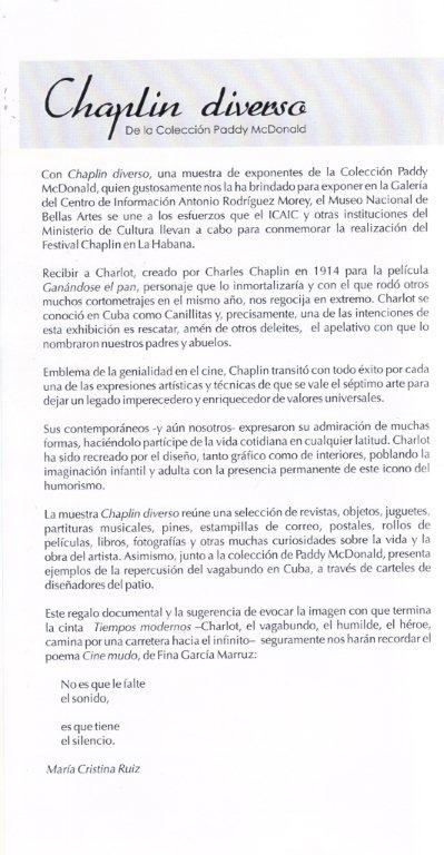 Con una muestra de exponentes de la Colección Paddy McDonald, el Museo Nacional de Bellas Artes se unió a los esfuerzos que el ICAIC y otras instituciones del Ministerio de Cultura llevan a cabo para conmemorar la realización del Festival Chaplin
