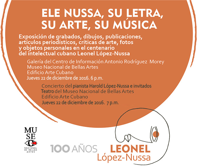 Exposición de grabados, dibujos, publicaciones, artículos periodísticos, críticas de arte, fotos y objetos personales en el centenario del intelectual cubano Leonel López - Nussa.